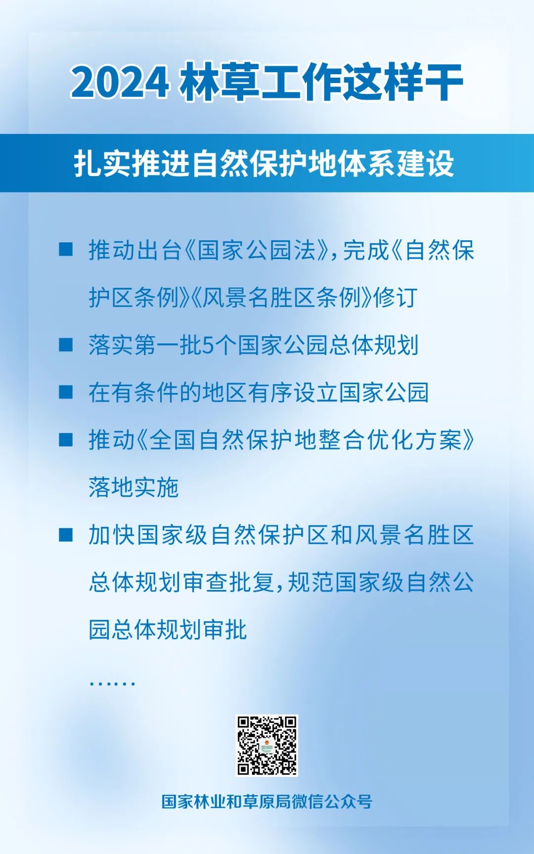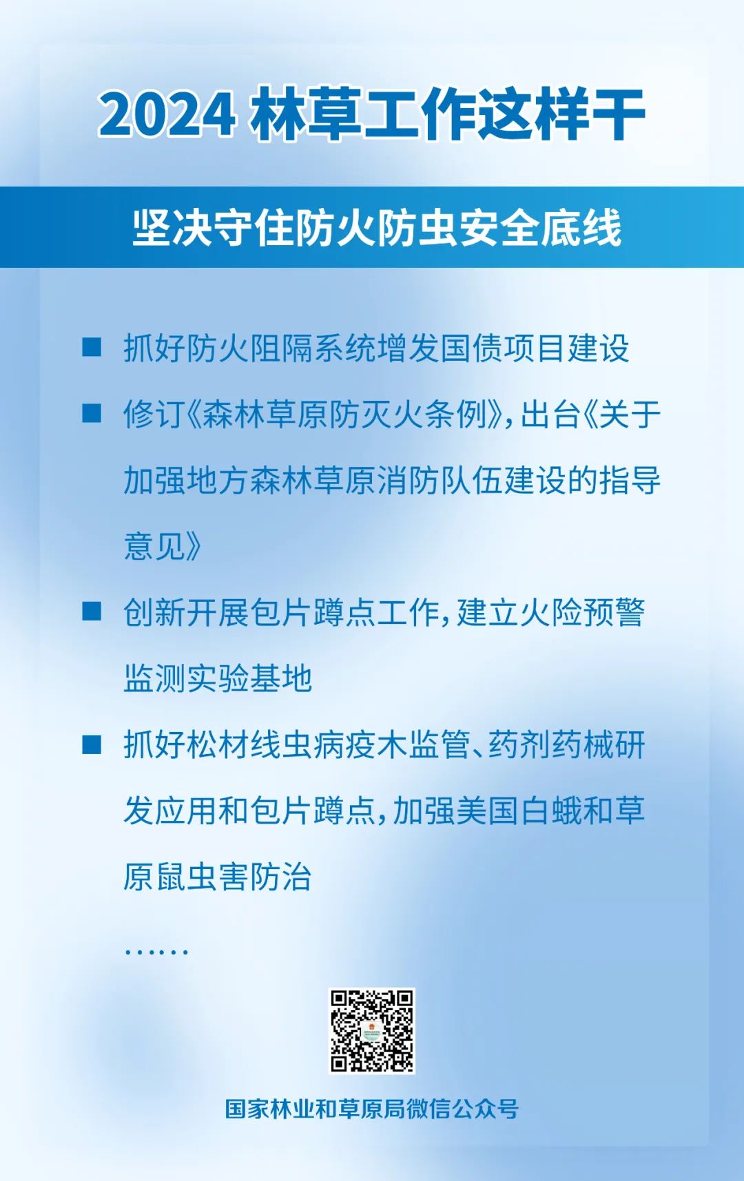 国家林业和草原局对标对表习近平总书记重要讲话指示批示精神和党中央决策部署,安排部署2024年10个方面重点工作任务。